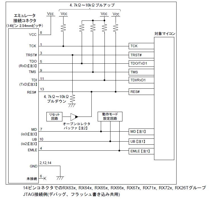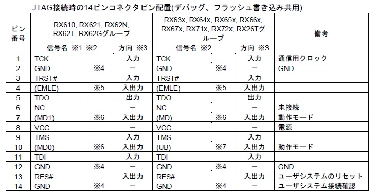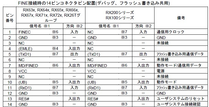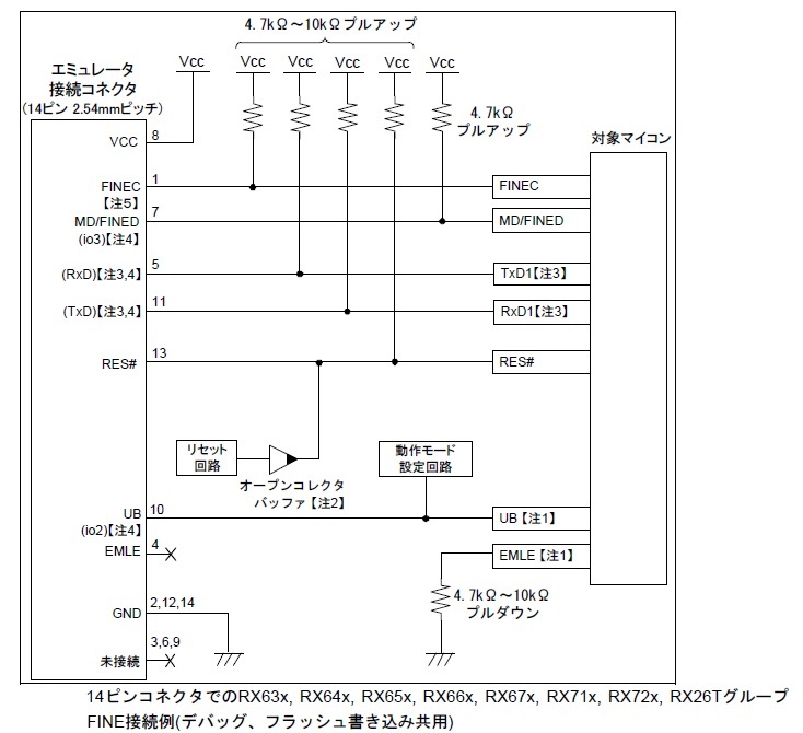 書き込み器の接続方法(ルネサス社の資料より抜粋)